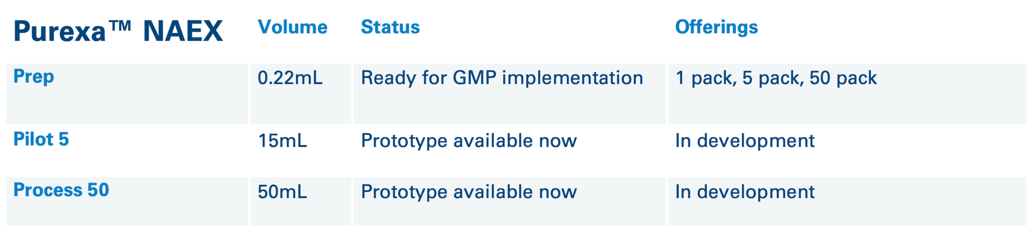 Purexa™ NAEX is a weak anion-exchange membrane product with a high binding capacity of supercoiled pDNA during the capture step that allows for effective recovery at fast processing speeds. This product can be used at small, medium, or large scale through our range of Purexa Form Factors.